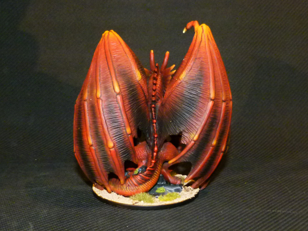 This winged, scaly bastard has sat unpainted on my shelf mocking me for over 4 years. I’d finished painting the rest of the game years ago, but never could face painting this guy. Well now consider him slain with the mighty airbrush. There was definitely a lot more I could have done here, more shading on the scales & wings etc, but really, I didn’t care to bother. This was a quick n’ dirty job just to get him done. The airbrush made fairly short work of him, leaving some of the smaller, fiddly details to pick out. Not overly pleased with the end result, but it feels good to have him completed after all these years