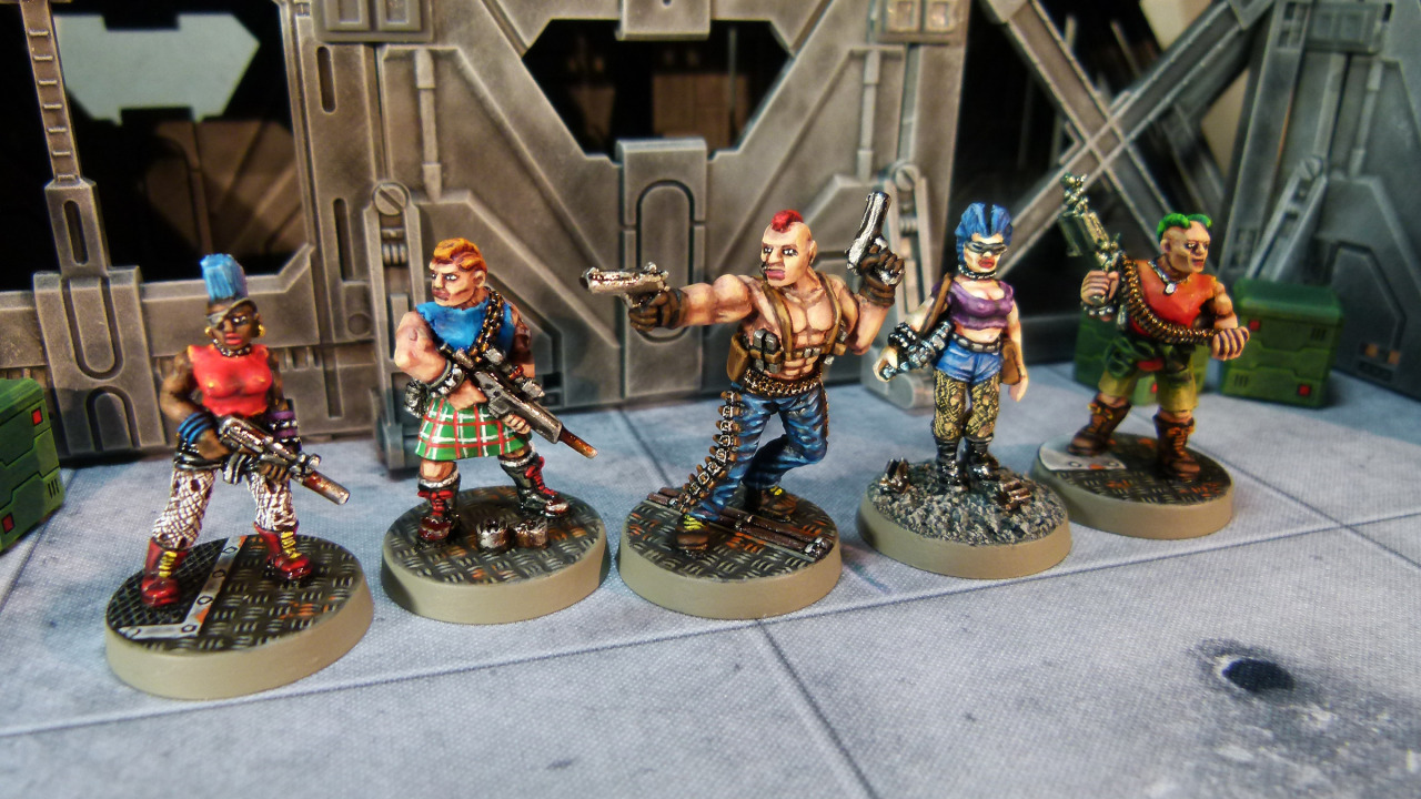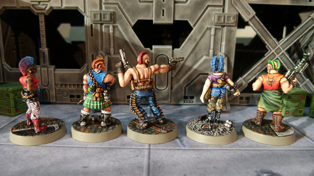 Bought these punks at Salute, they are from Wargames Foundry’s “Street Violence” range but I thought they look perfect for using in the new Judge Dredd Miniatures Game. They were metal and really nice sculpts, easy & fun to paint. I went to town with the different colours and experimented with a few skin tone differences. These perps look ready to terrorise the citizens of Mega City 1